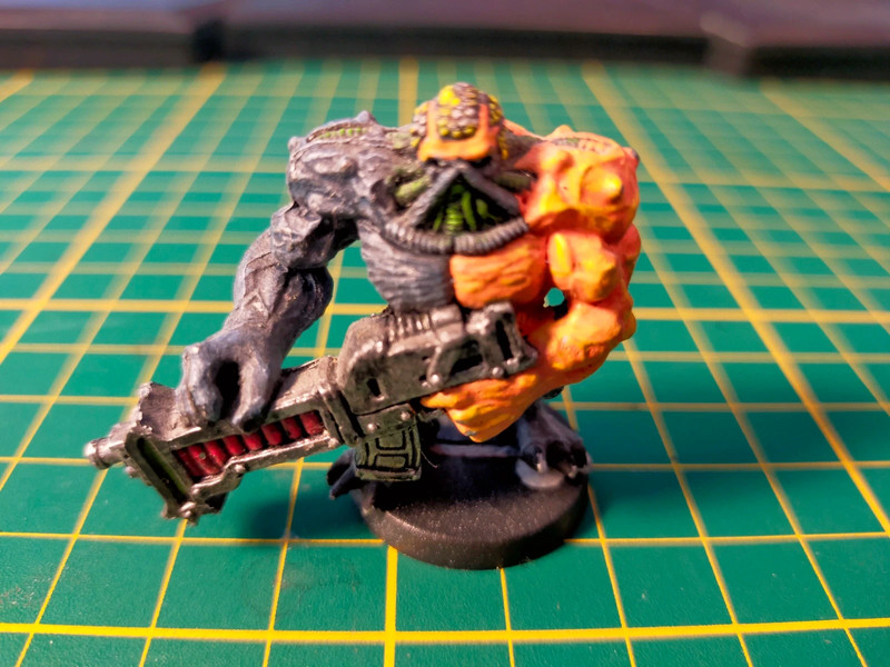 Sul manuale di Dark Eden compare anche questo losco figuro, equipaggiato di un'arma doppia, che unisce ad una violenta motosega uno spruzzatore di acido corrosivo (da cui il nome del pezzo). Stranamente, non si tratta di un eroe, ma è considerato modello speciale e può quindi essere associato a qualsiasi warband della Oscura Legione. Caratteristiche e danni dei suoi attacchi sono di tutto rispetto, ma la peculiarità più curiosa è che il suo comportamento è altamente instabile. All'inizio di ogni turno si deve tirare un D20, e le opzioni sono che agisca normalmente, che perda una azione, che ne guadagni una in più, oppure, in caso di catastrofe (un 20) che venga gestito dall'avversario per quel turno. E se questo dovesse avvenire, vedo parecchio male la wb cui è stato abbinato, perché lo spruzzo acido ha il template del lanciafiamme, e può tirare giù tutti i suoi compagni con molta facilità...