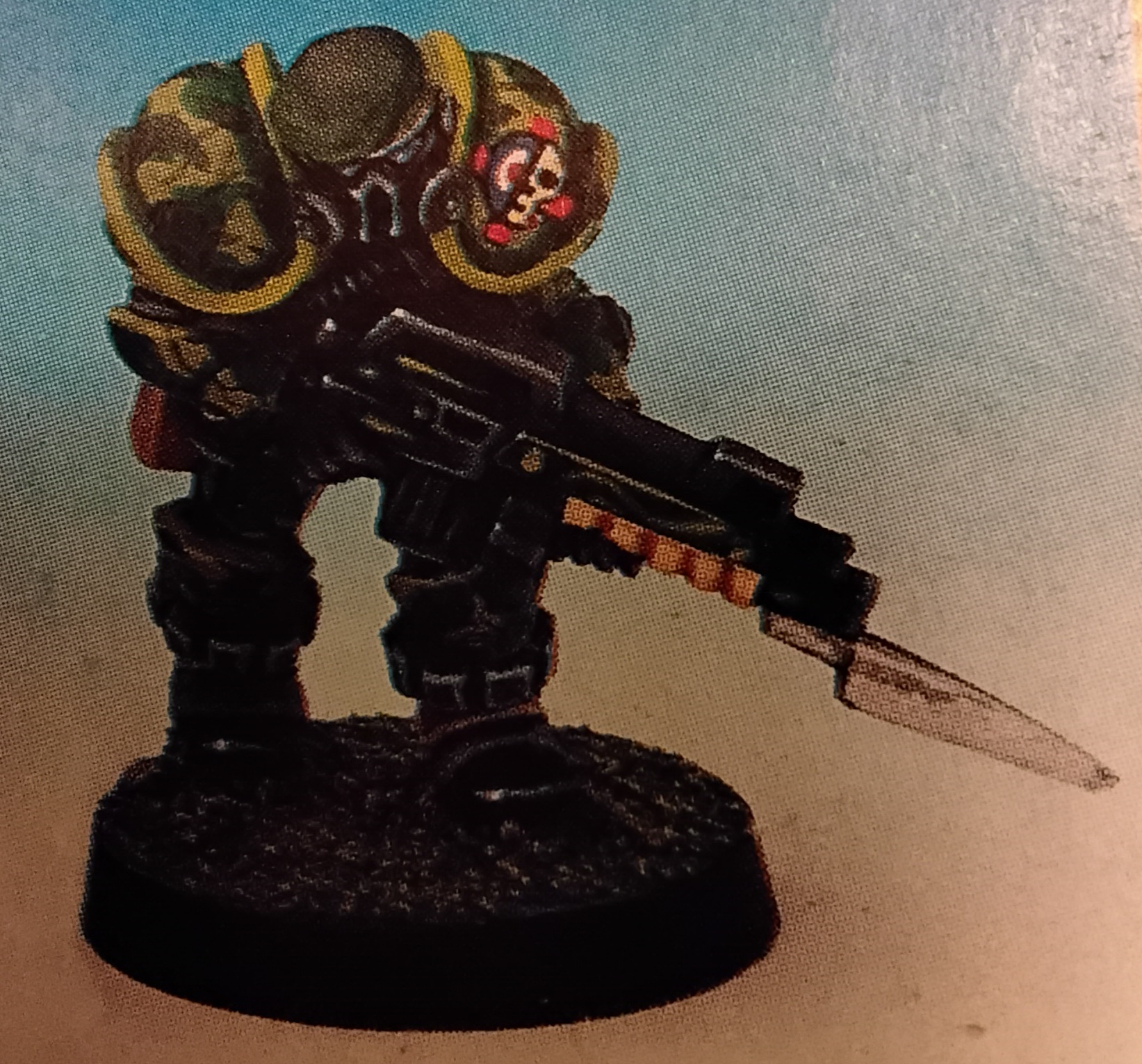 Questo è forse il post più complesso da scrivere. Le miniature che vedete in foto sono infatti quelle dei Blood Berets, l'unità più gettonata ed iconica degli Imperial. Tuttavia per queste miniature furono scritti, nel manuale "Bestie di guerra", quasi una dozzina di profili alternativi, e siccome alcuni di questi erano molto accattivanti, abbiamo deciso di adottarne cinque, puntando alla varietà di effetti in gioco e ad una coerenza stilistica e compositiva dei pezzi che avevo a disposizione. Nelle foto sotto, prese dai manuali, trovate i modelli di livree dei profili da noi scelti. Le miniature, dicevo, sono sempre le stesse, ma alcune squadre hanno la maschera antigas altre no, oppure delle piccole armi in più, ed a seconda della squadra il sergente è quello con lo Shotgun o quello con la Chainripper e l'Interceptor. Tutti i capitani di queste squadre possono essere schierati solo in presenza della squadra di riferimento. Andiamo con ordine.